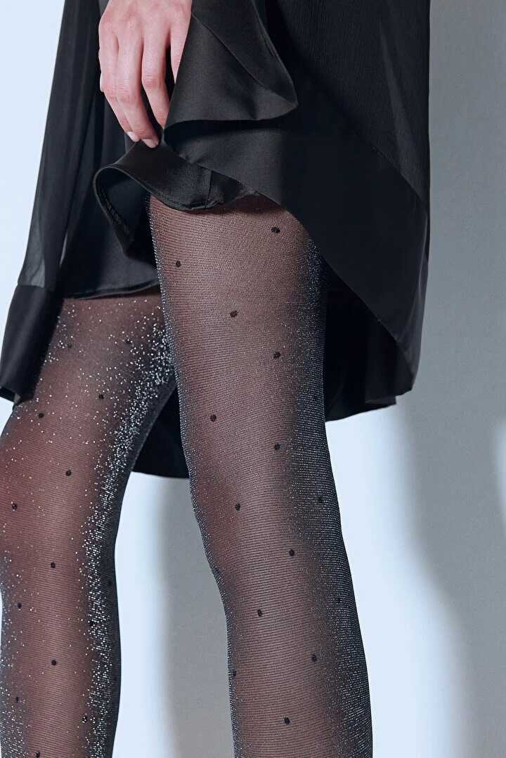 Gelince Haber VerShiny Stil Külotlü Çorap, burnu dayanıklı olan bu çorap, uzun süreli kullanımlarda bile dayanıklılığını koruyor. Parlak ve puantiye desenli detaylarıyla tarzını tamamlar. İnce dokusuyla da ayaklarını sararken şıklığını da ön plana çıkarır. Şimdi sen de tarzını yansıtmak için bu külotlu çorabı tercih edebilirsin!