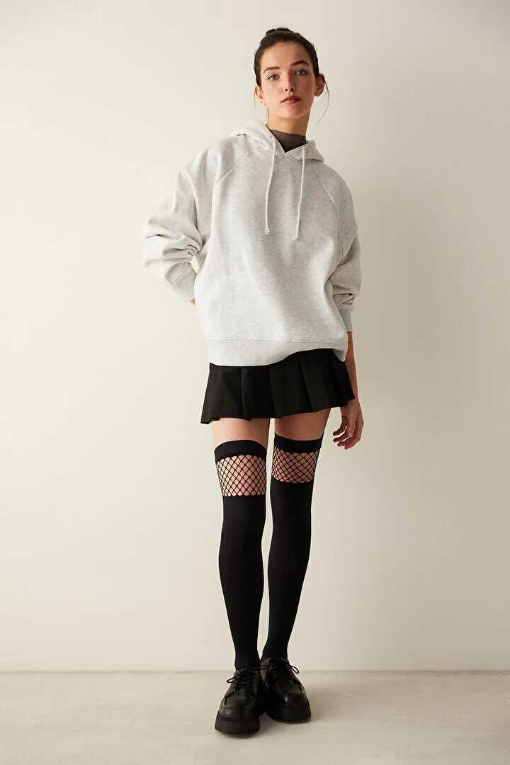 Gelince Haber VerTokyo Dizüstü, siyah opak alt kısıma sahip, üst kısmı zarif file detaylı bir çoraptır.