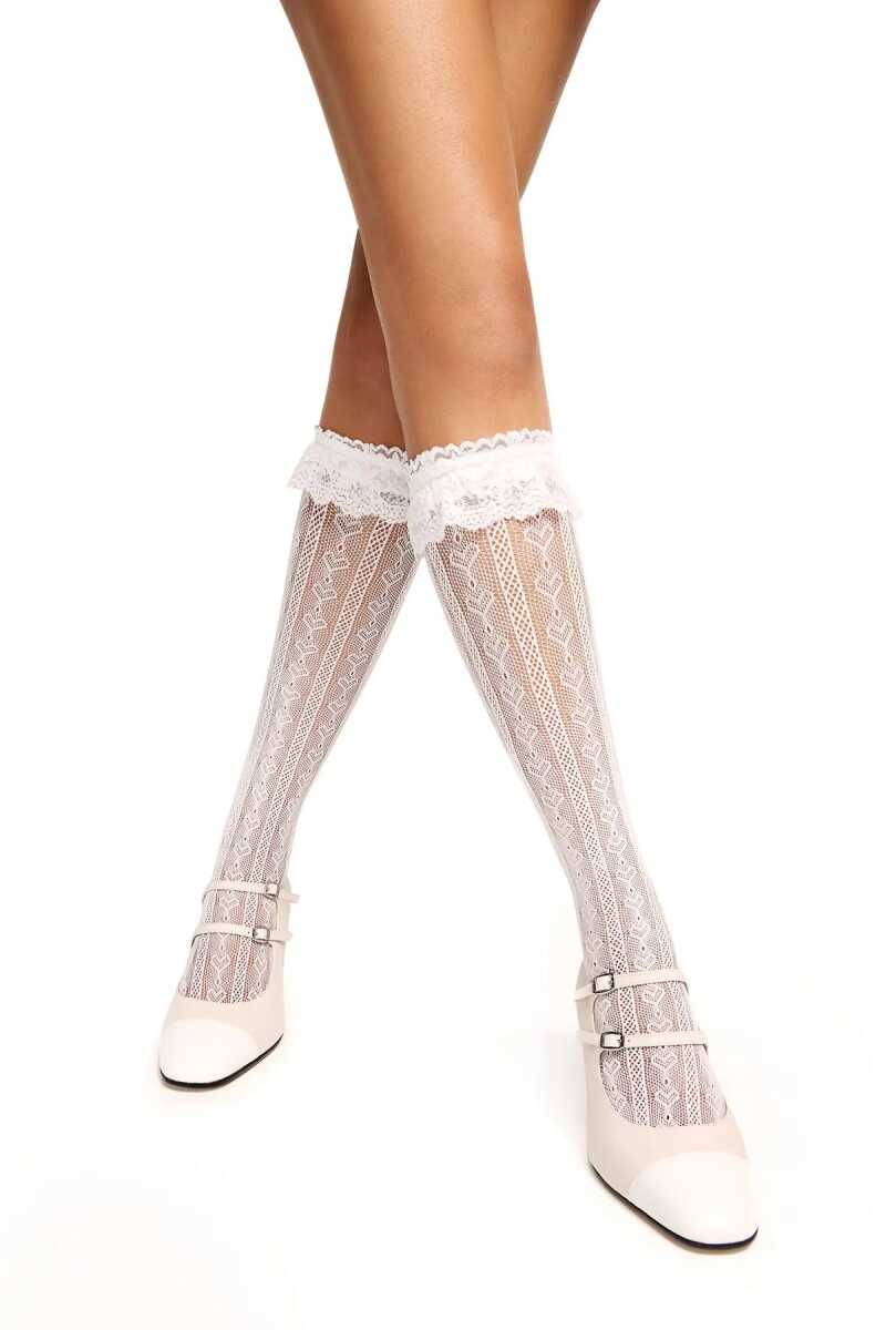 Gelince Haber VerSweet Heart File Çorap, dantel detaylı, kalp ve çizgi desenli beyaz file çoraptır. File dokusu, sana şıklık sunar. Kalp desenleri, tasarıma sevimli ve zarif bir dokunuş eklerken, ince çizgiler şık bir görünüm kazandırır. Dantel detayına sahip bu çorap ile stilini daha şık hale getirir. Hemen sipariş ver ve kalbin zarafetini her adımda hisset!