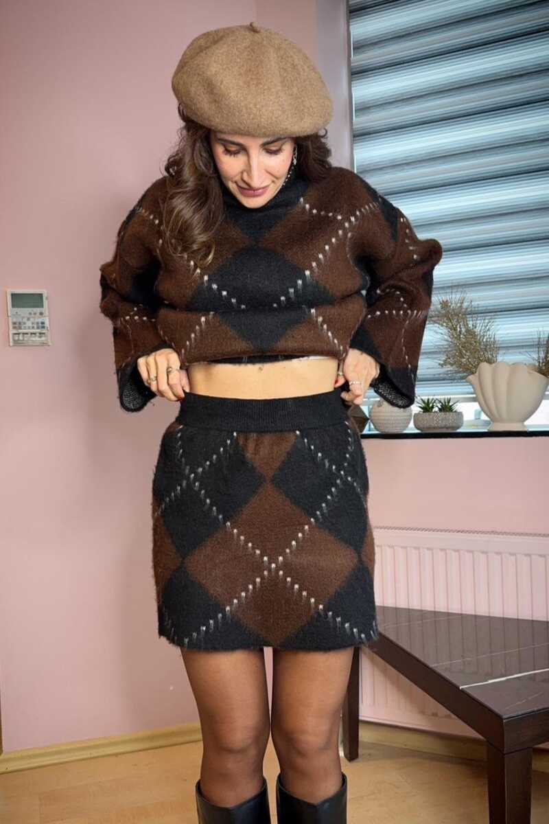 Gelince Haber VerTriko kumaştan üretilen kazak - etek takım, set.