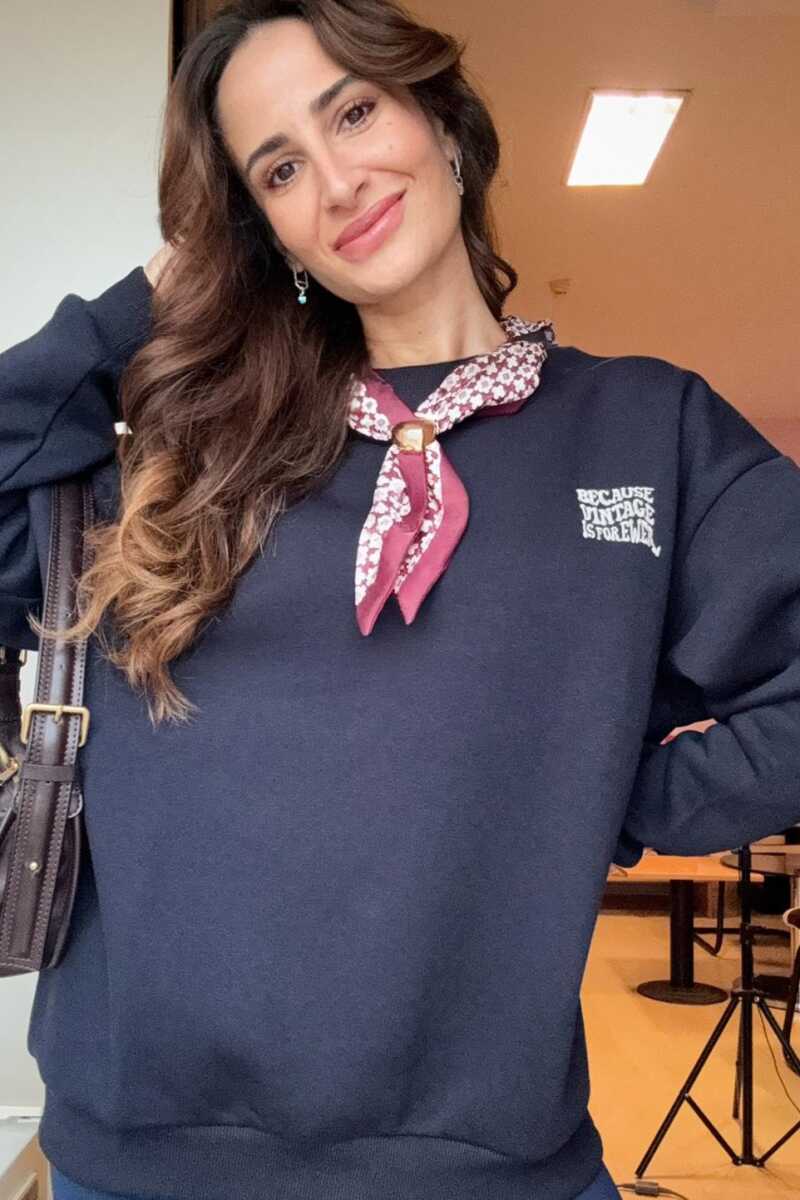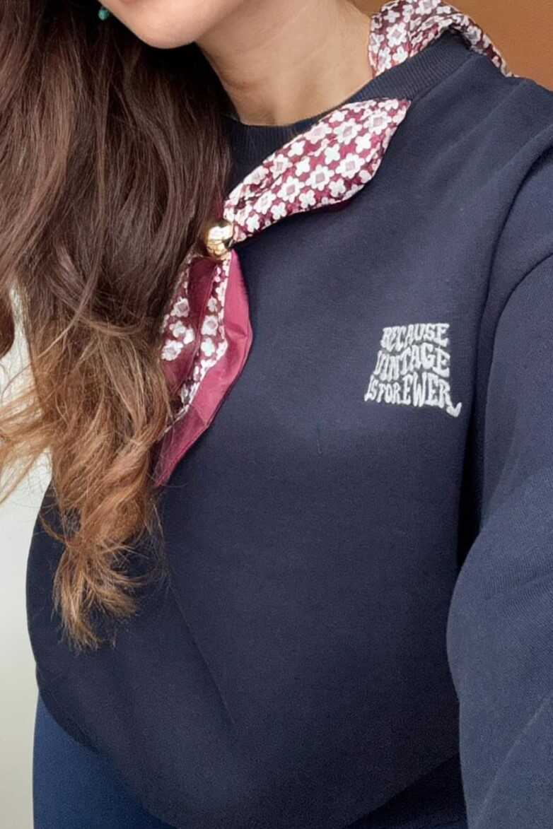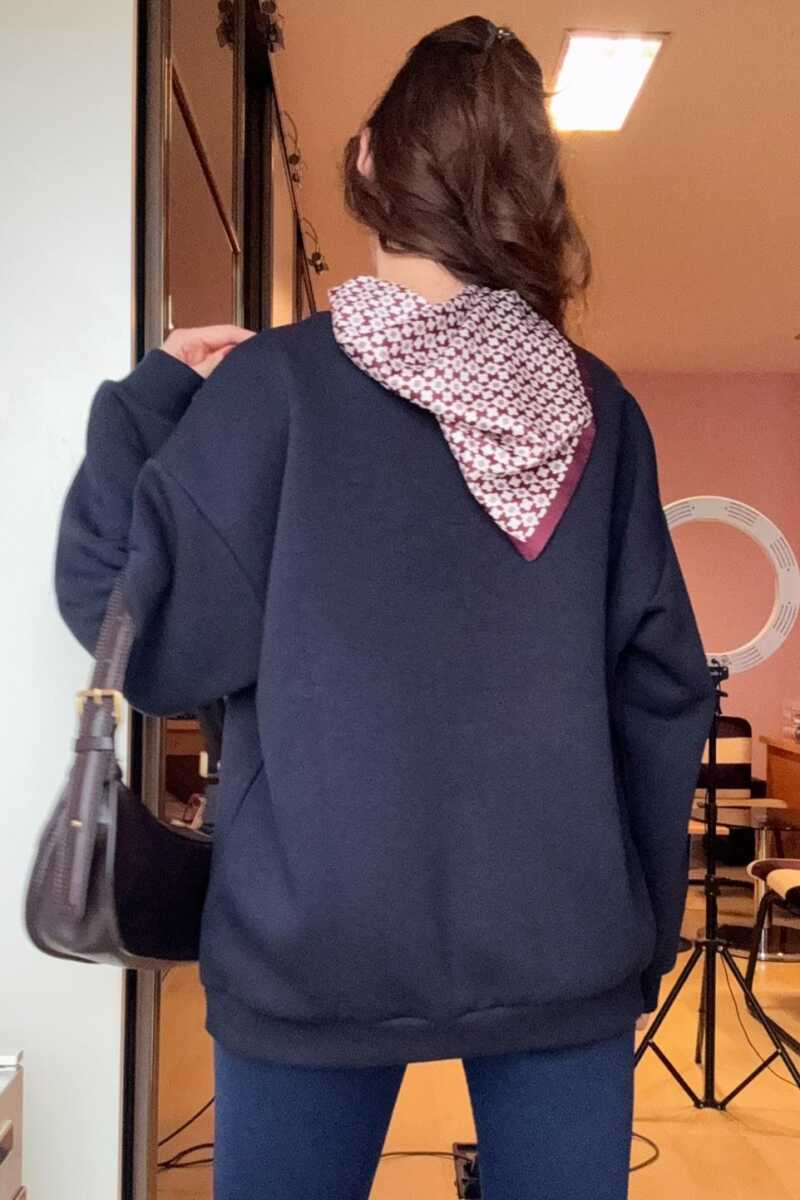 Yuvarlak yakalı, göğüs kısmında minimal nakış detayı bulunan, içi yumuşacık şardonlu kumaştan oversize sweatshirt.