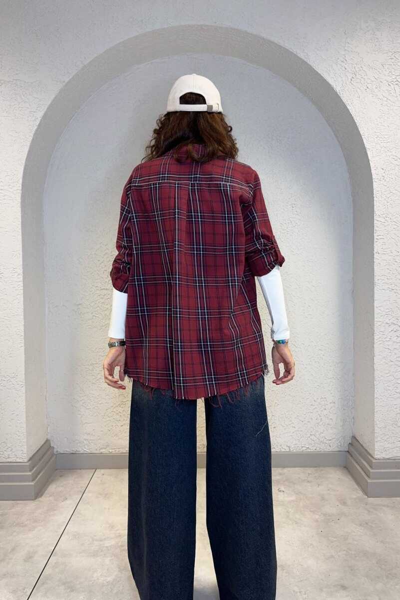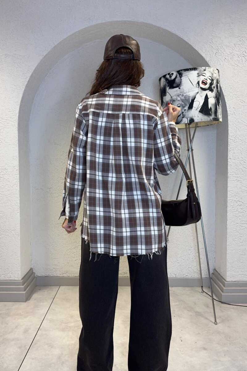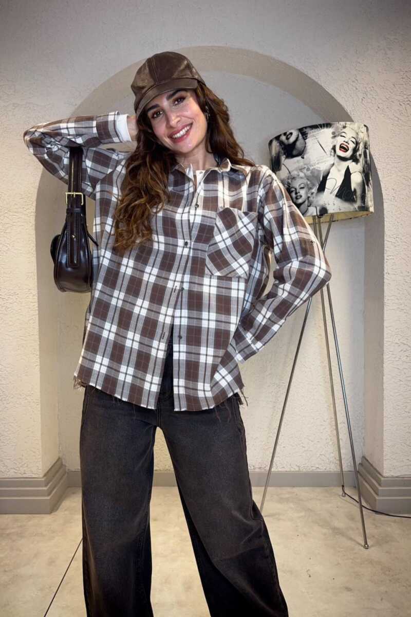 Gelince Haber VerUzun kollu, yakalı ve önden düğme kapama kareli oduncu gömlek.