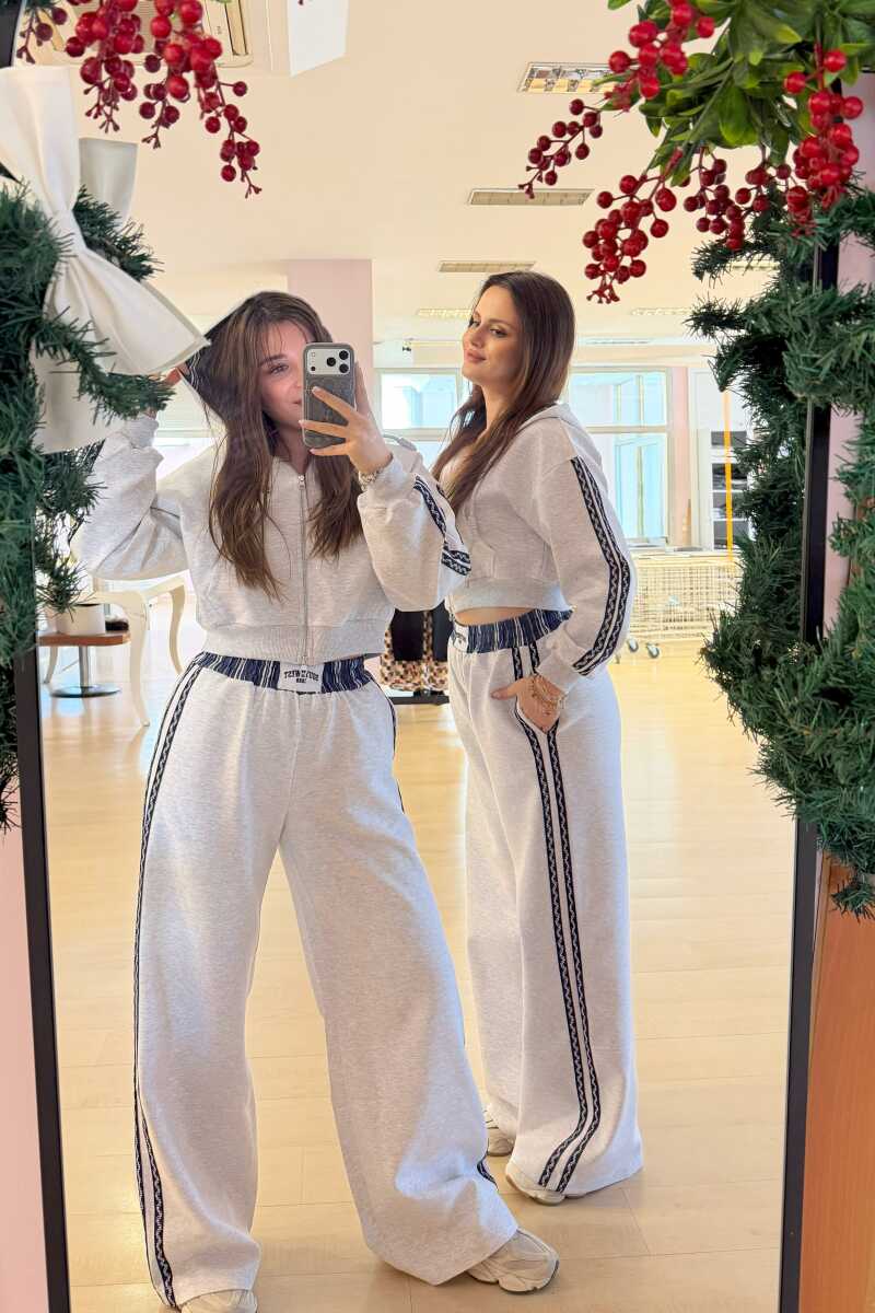 Yumuşak dokulu kumaştan, yanları şerit detaylı, beli garnili lastikli etiket detaylı, yan cepli, rahat kalıp, bol paça pantolon.
