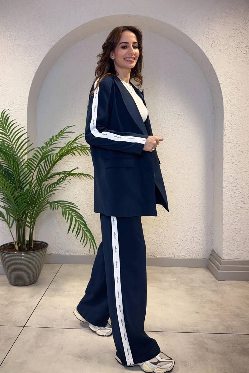 Yanı şerit ''Stronger'' yazı baskı detaylı,Bağcıklı bağlamalı bel, çift cepli, beli kumaş match detaylı, yüksek bel bol paça pantolon.