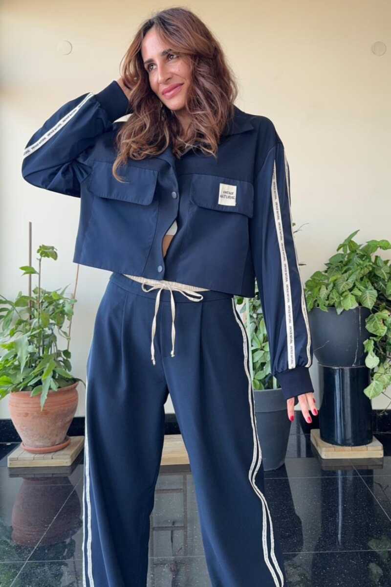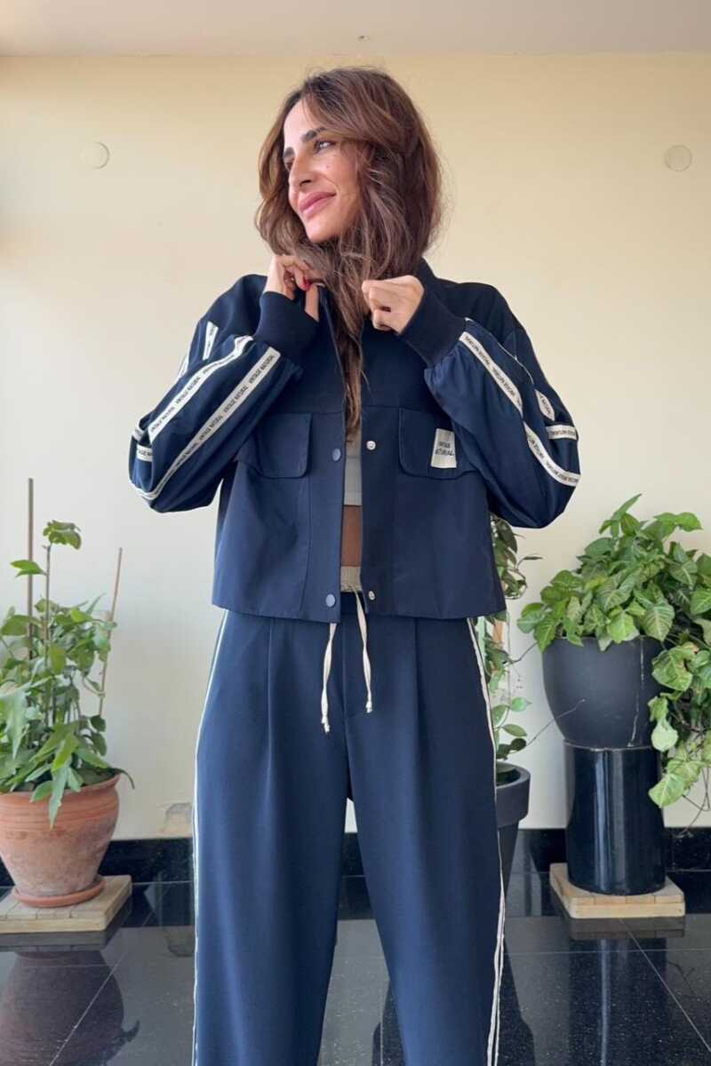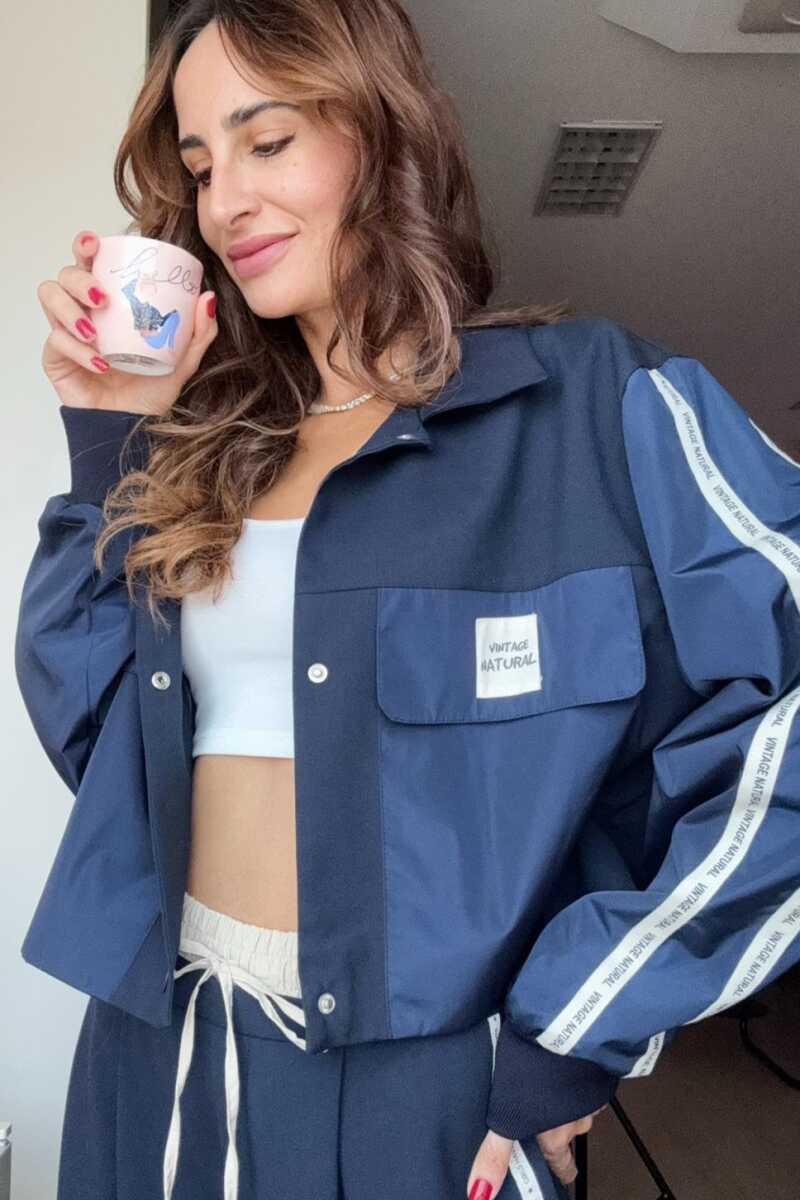 Teknik kumaş detaylı, içi astarlı kısa ceket.Uzun kol, düğme kapama, kolları şerit detaylıdır.Ön cep etiket detaylı ve iki kapak ceplidir.