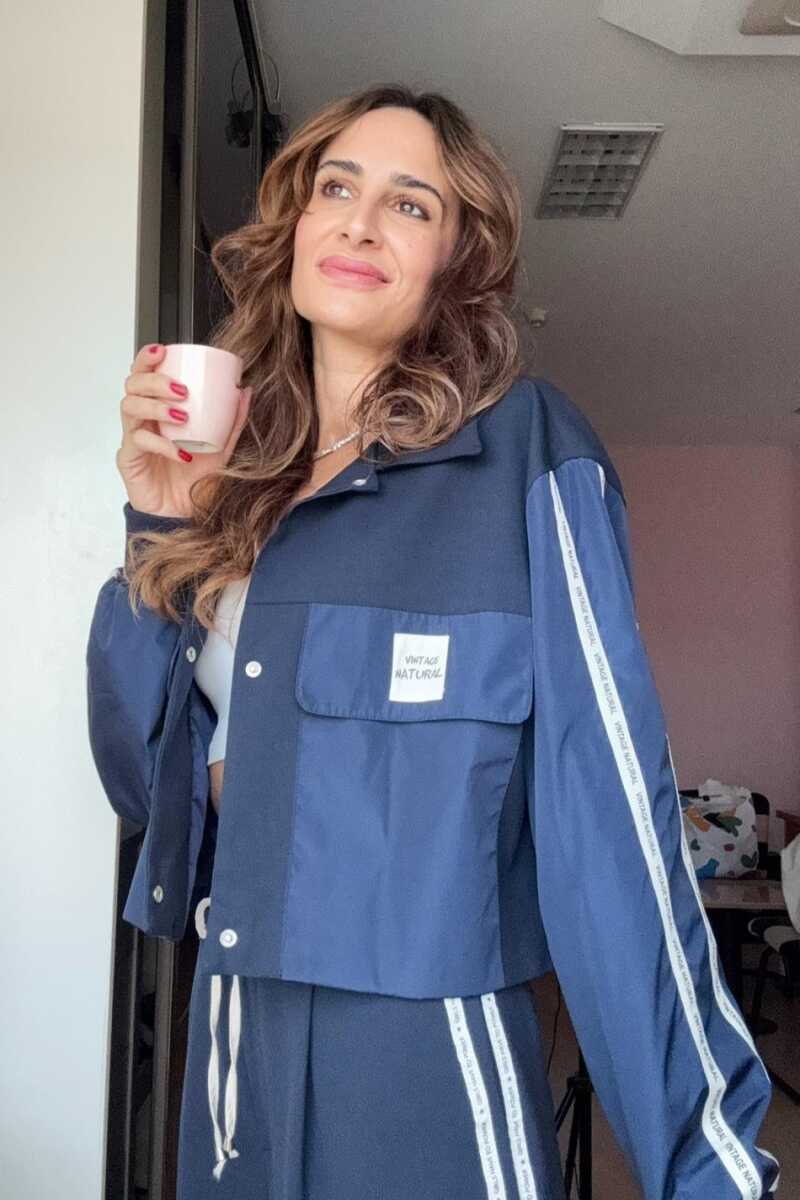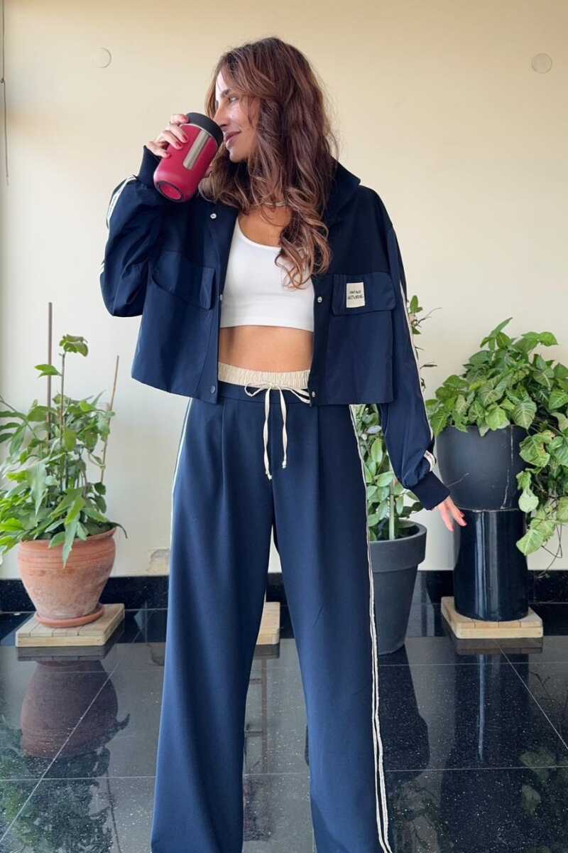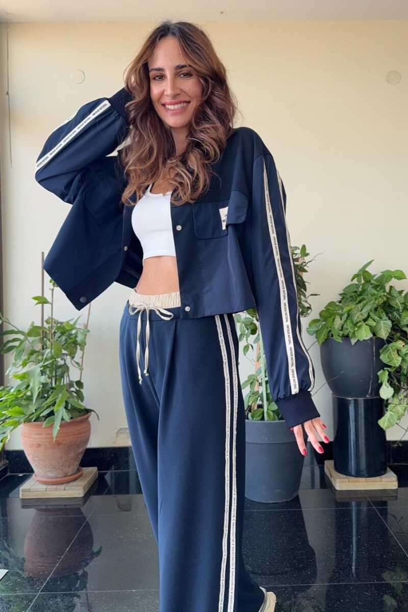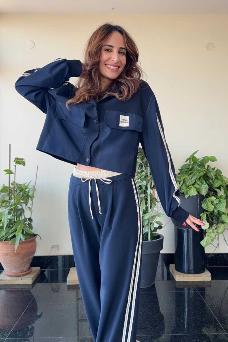 Teknik kumaş detaylı, içi astarlı kısa ceket.Uzun kol, düğme kapama, kolları şerit detaylıdır.Ön cep etiket detaylı ve iki kapak ceplidir.