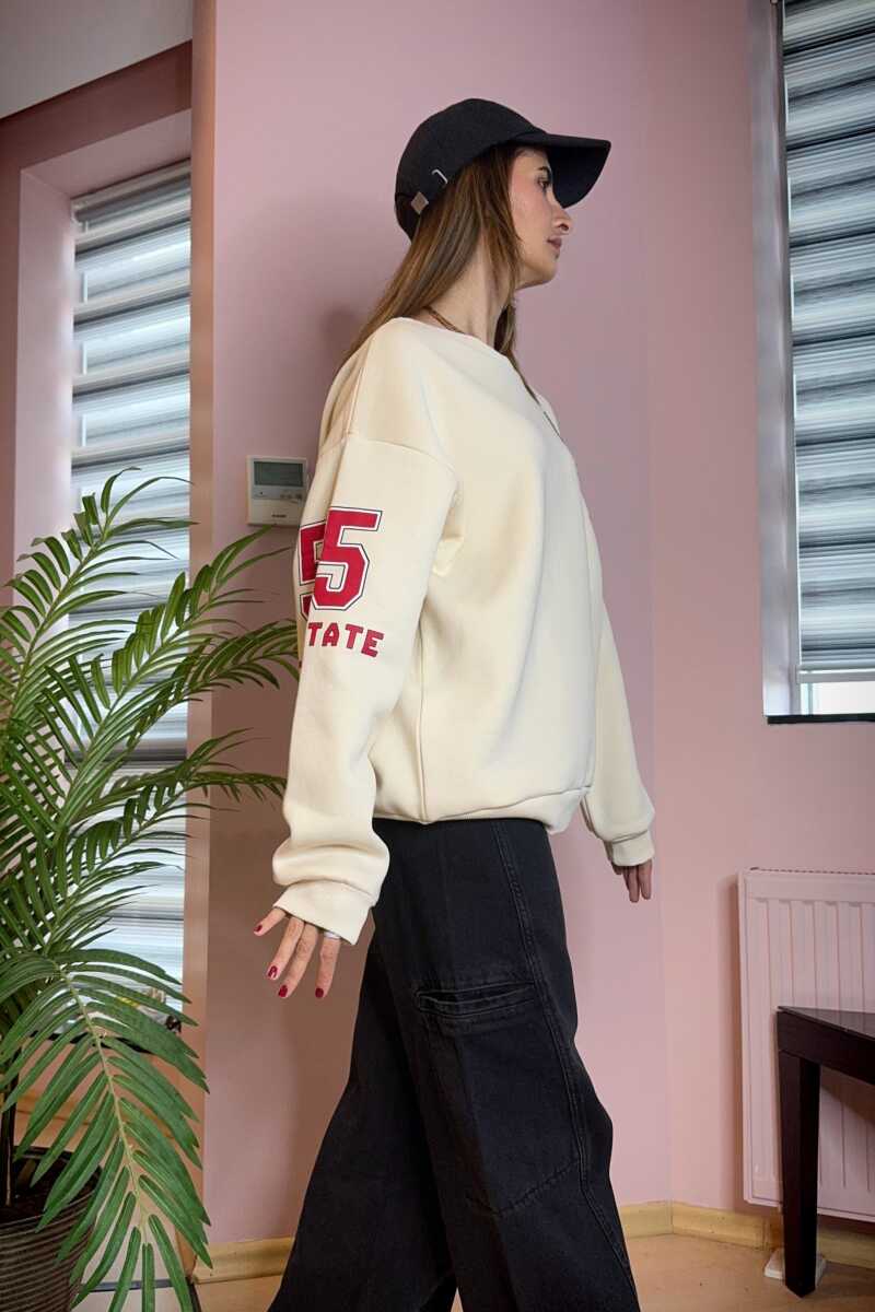 Gelince Haber VerPamuklu 3 iplik kumaştan, bisiklet yaka sweatshirt.